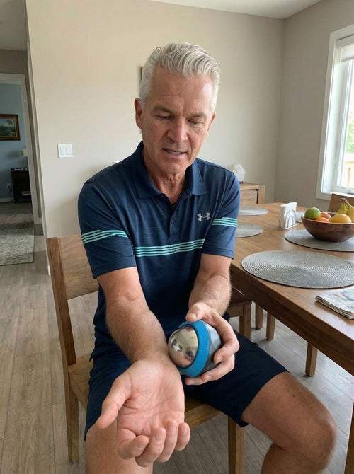 ⚠️ Si la balle est très froide ou très chaude, utilisez un textile au début pour éviter l’inconfort ou une brûlure. Ne jamais chauffer au micro-ondes / au four.